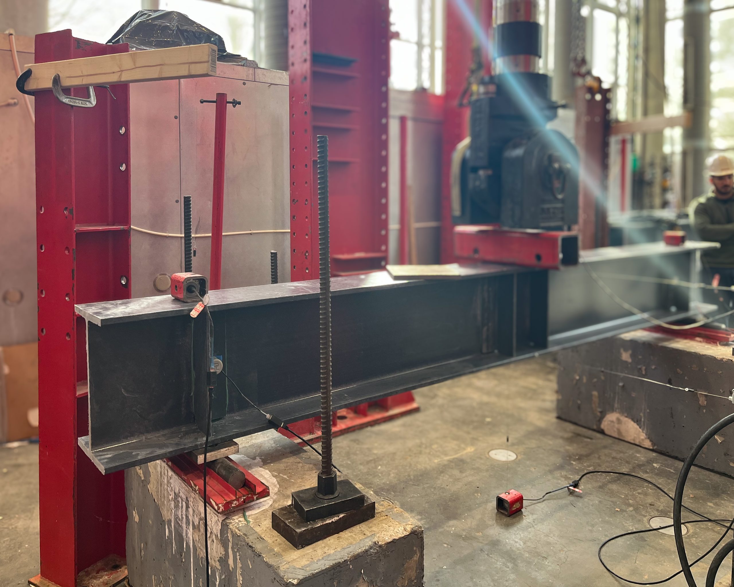 As part of this project, the Frost team served as principal investigator and participated on-site at the North Carolina State University Constructed Facilities Laboratory (CFL), supporting and observing full-scale beam testing. This collaborative academic–industry program was focused on advancing the understanding of the structural behavior and performance of pultruded FRP beams under realistic loading conditions. Direct observation of the testing provided valuable insight into stiffness response and overall system behavior under