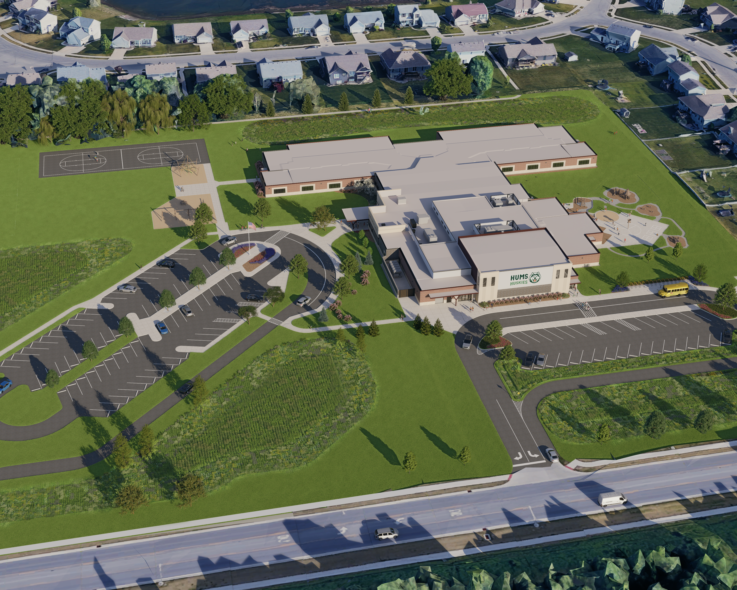 The Hums Elementary School project involved a new 80,000 sq. ft. facility designed for up to 500 K–6 students.