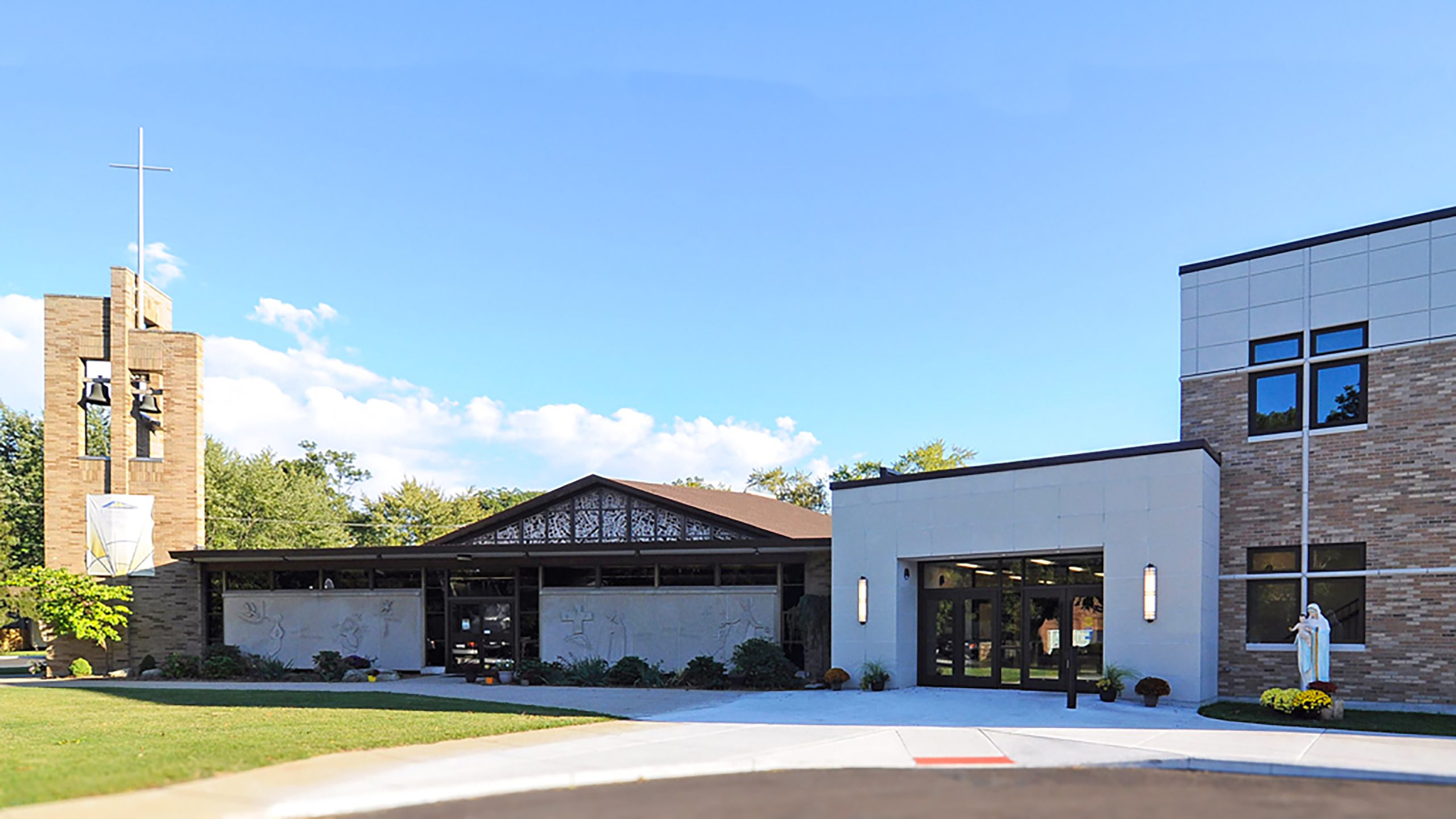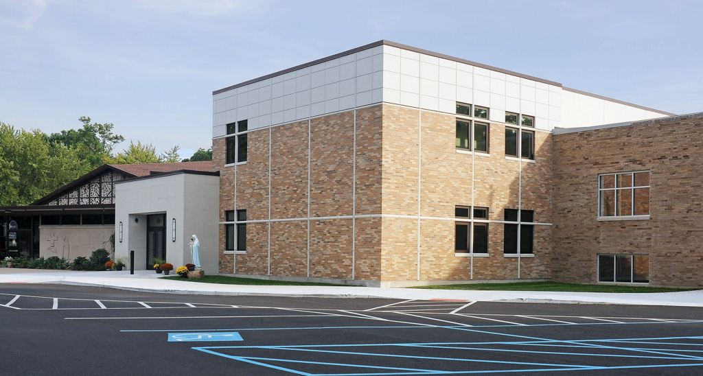 To better serve its growing community, the parish recently undertook an expansion project. This project added 15,500 square feet of building space, creating a seamless connection between the church and school buildings. The new space enhanced the functionality of the preexisting facilities and also provides additional areas for community gatherings, educational activities, and ministry work.