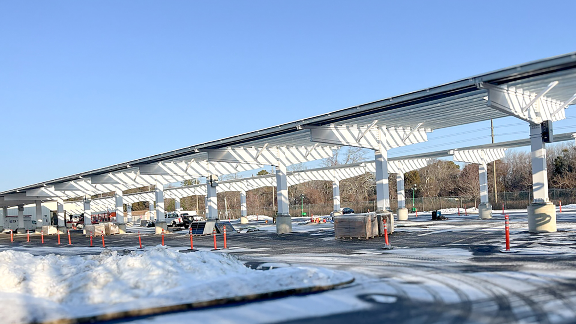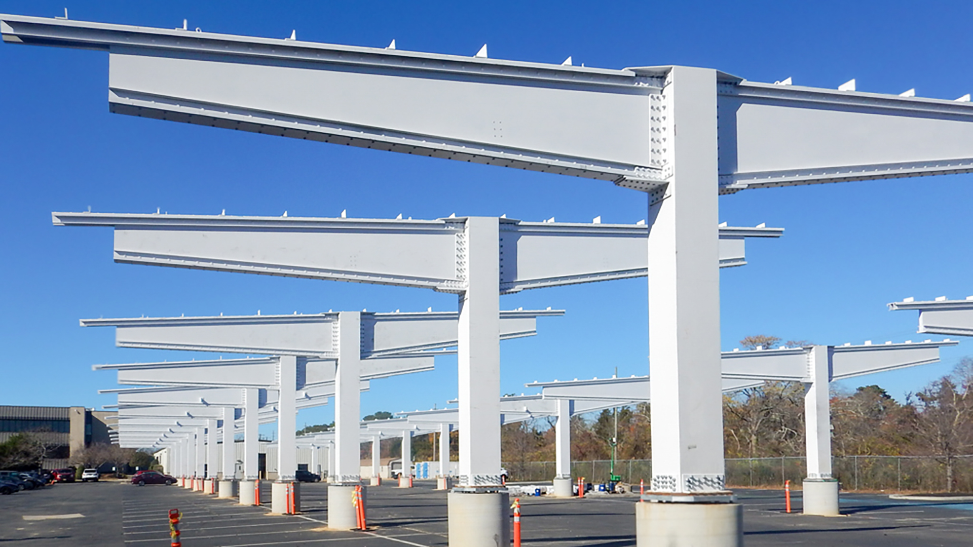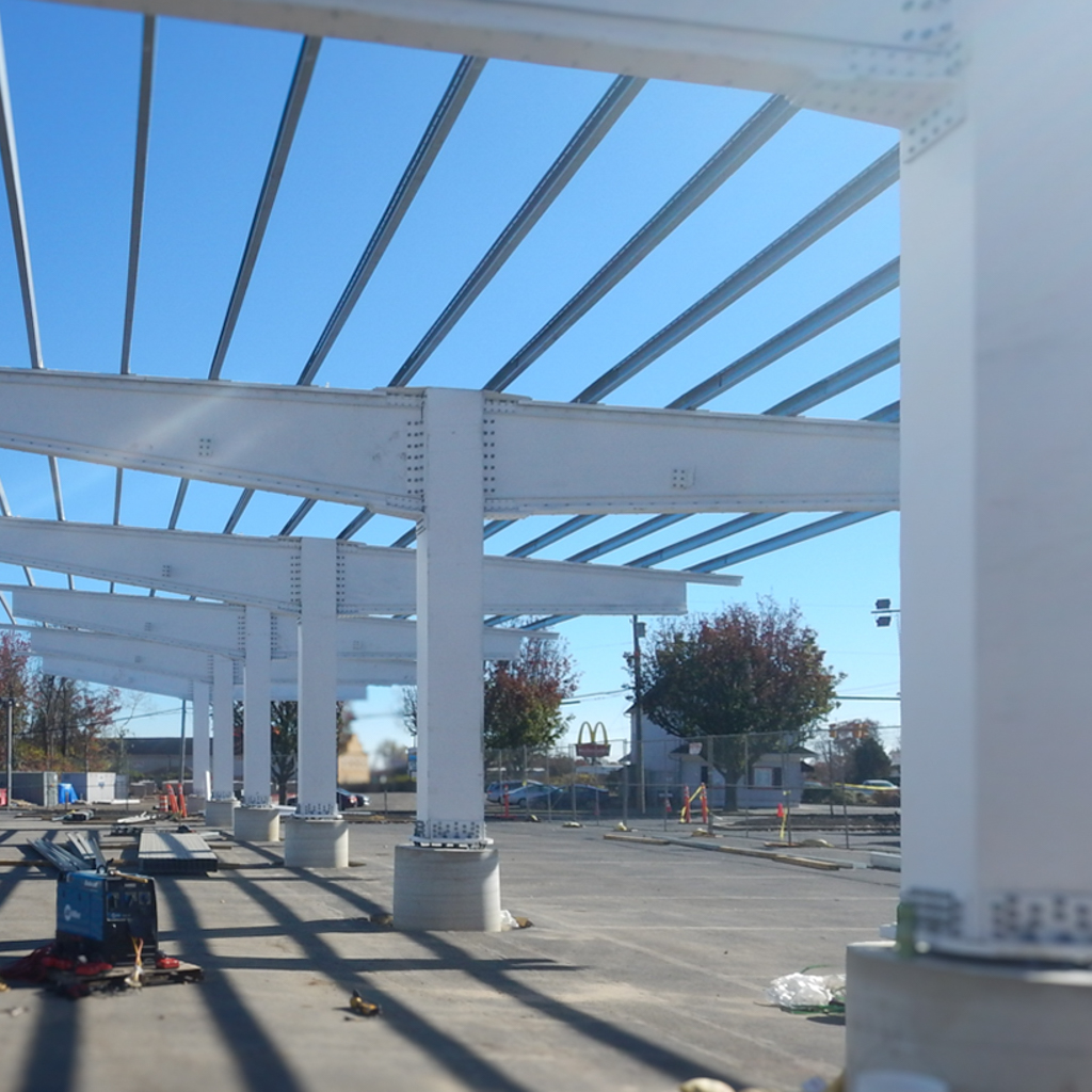 This solar energy project, located in Atlantic City, New Jersey, involved Frost providing structural engineering services to support the development of an innovative product for a pultruded FRP solar parking panel support canopy system. The canopy structural system is composed of cantilever trusses supporting a system of metal purlins and composite square FRP columns. The Frost team performed a structural analysis review of the trusses’ elements and connections, designed the columns for reactions from the trusses, designed connections between the canopy’s elements, and designed the foundation.